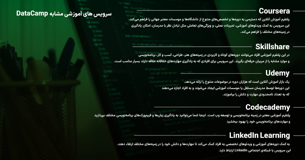 از آنجا که مهارتها بهسمت تخصصیتر شدن درحال حرکتاند، پلتفرمهای آموزشی هم بهطور انحصاری به حوزههای مشخصی محدود شدهاند. اما این محدودیت باعث شده تا خدماتی که ارائه میدهند، کیفیت بهتری داشته باشد. بین سرویسهای آموزشی در حوزهی برنامهنویسی، دیتاکمپ یکی از بهترین گزینههاست.